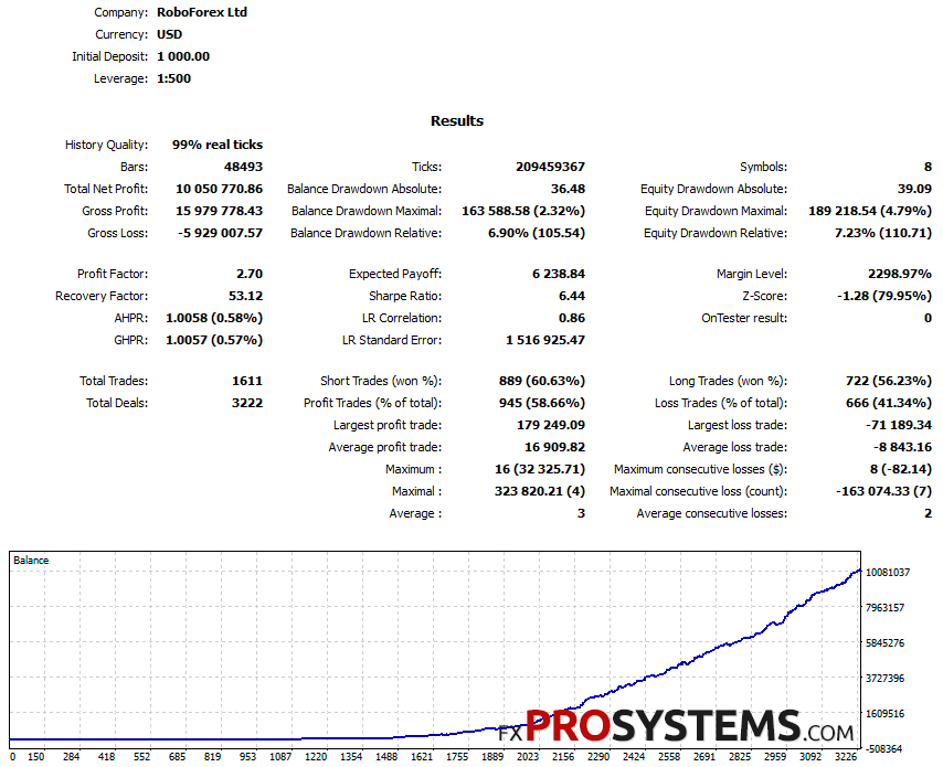 As you can see, the results of the tests do not differ much from each other. This suggests that the EA will work correctly when installed on any of the eight pairs.