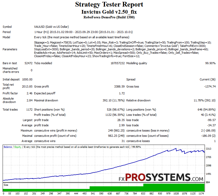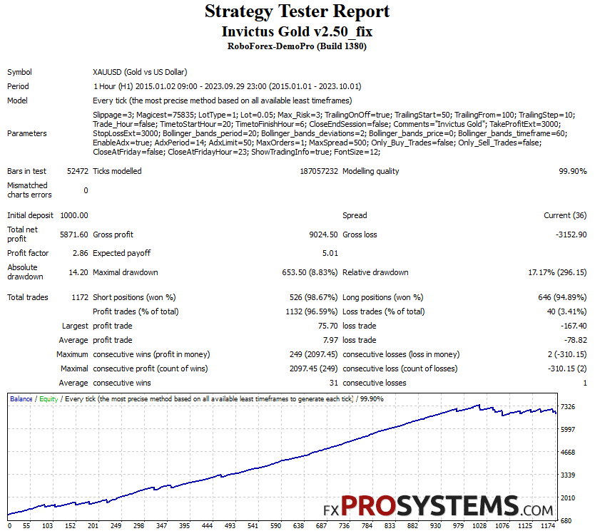As a result, we have a profitable EA with a very reliable trading algorithm based on the time-tested Bollinger Bands indicator. A trend filter in the role of ADX and slippage protection make Invictus Gold EA even more reliable. However, you should not neglect the safety rules and should timely withdraw the profit earned by the EA, unless, of course, the task is to reinvest the profit. For uninterrupted work, use a trasted VPS. And do not give the EA the money that you are not ready to lose, because there is always such a risk.