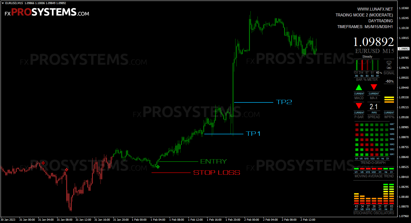 LUNA-M1 is the epitome of speed and aggressiveness, delivering rapid signals for fast-paced day trading or scalping. LUNA-M2 offers a balanced approach, with moderate risk and signal speed, making it ideal for typical day or swing trading. Meanwhile, LUNA-M3 provides a conservative approach, allowing for catching bigger moves on higher time frames with slow trend changes.